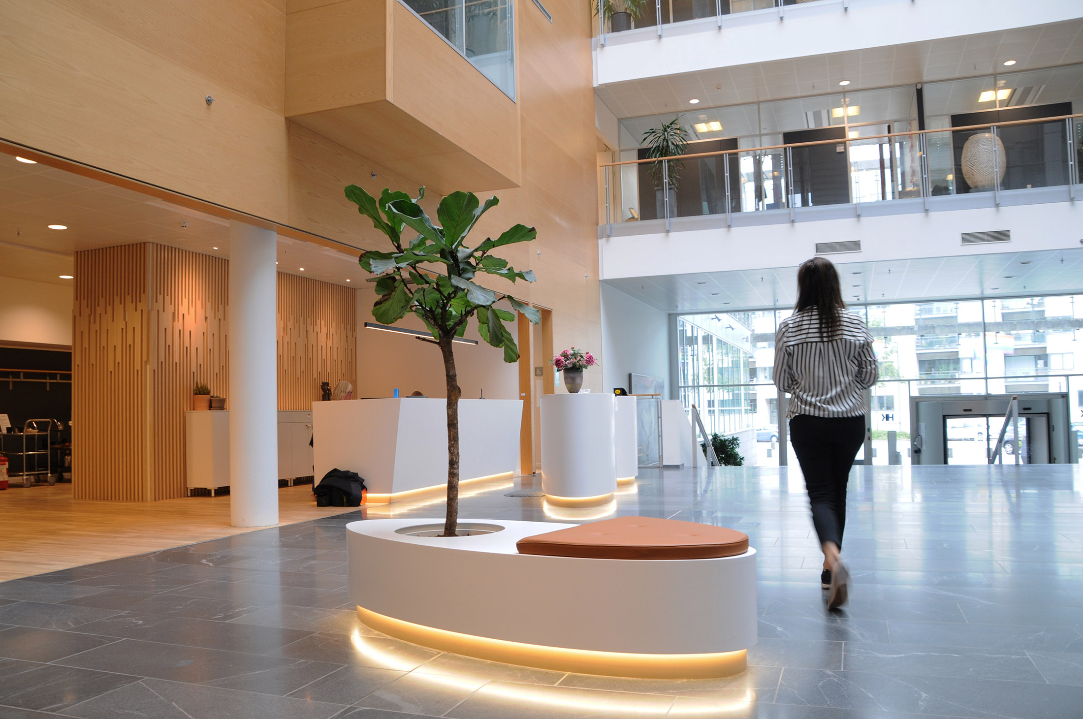 HK ønskede, at deres atrium i huset, skulle udnyttes bedre. Receptionen var placeret i et rum i rummet og et mindre café-område levede ikke længere op til det daglige behov.