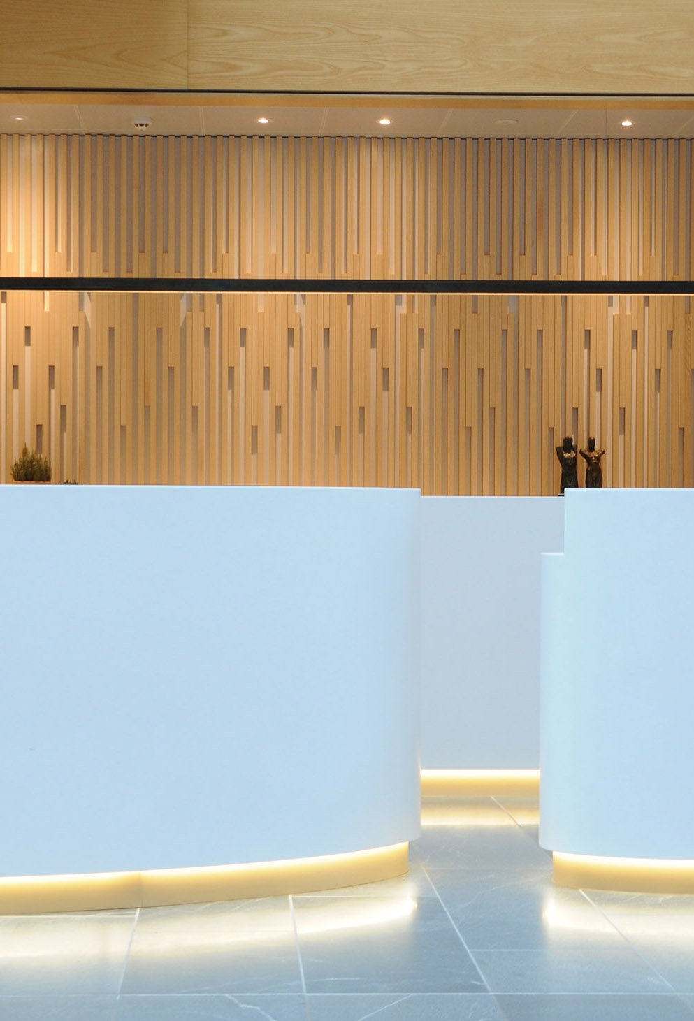 Indretning af foyer og receptionsområde, med design af specialinventar til receptionsskranker og tekøkken.